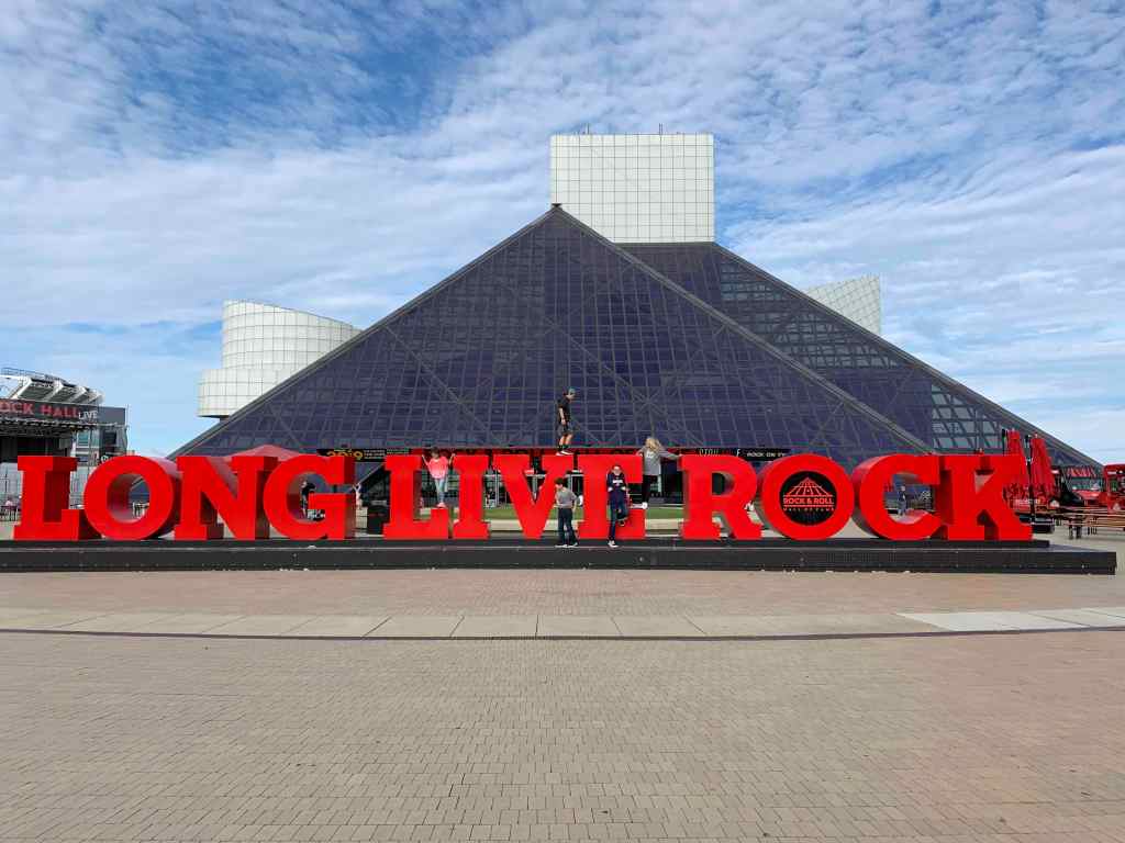 You really need a full day at the museum. There are so many videos to watch, exhibits to explore, and interactive music kiosks. Our favorite, by far, is the Power of Rock experience in the Connor theater. This short film features live performances at Hall of Fame induction ceremonies, but the theater uses smoke machines, surround sound, and lights to give the feel of a true live performance. The last performance features a guitar solo by Prince that literally brings tears to my eyes–it’s that good. You also have to take a moment to get a photo by the “Long Live Rock” sign. We normally don’t spring for these Hall of Fame photos, but we couldn’t pass this up with all 5 kids…