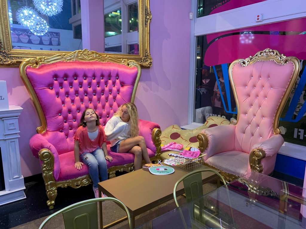Being from Pittsburgh, we’re not technically supposed to like Cleveland. The Browns have been a long-time nemesis of our Pittsburgh Steelers. Pittsburghers talk trash on Cleveland all the time. Here’s a little secret, though… I really like this city. There are all these interesting spots, like the “Free” stamp, the installation art we found in a city square, and East 4th Street, where all the restaurants and bars have outside seating on a pedestrian-only street. We loved Colossal Cupcakes with the giant pink chairs and delicious cupcakes.