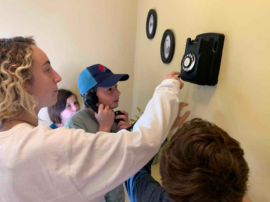 We decided to make one last stop before we drove home on Sunday. If you are like everyone else at Christmas and watch “A Christmas Story” at least once over the holiday season, you are familiar with the story of Ralphie, his family, and his desire to own a Red Ryder BB gun. The Christmas Story house is located in Cleveland! We booked a tour of the house, checked out the family car, and toured the museum. It was so fun to see all the scenes we watch every year! I highly suggest paying to tour the house. Our tour guide was wonderful, and there were so many interesting stories about the filming of the movie. Our kids, as you can see, were most entranced by the mystique of a rotary phone.