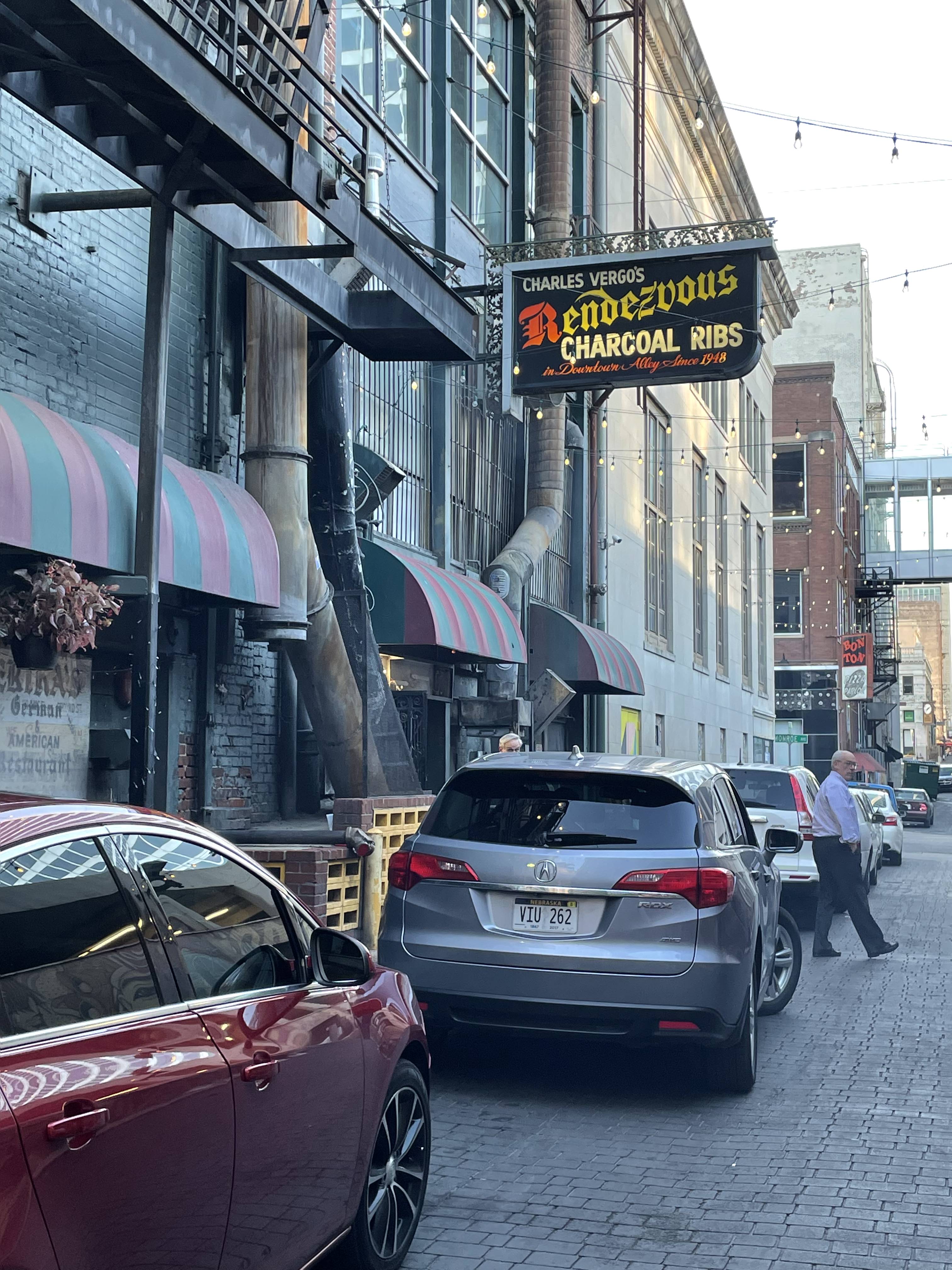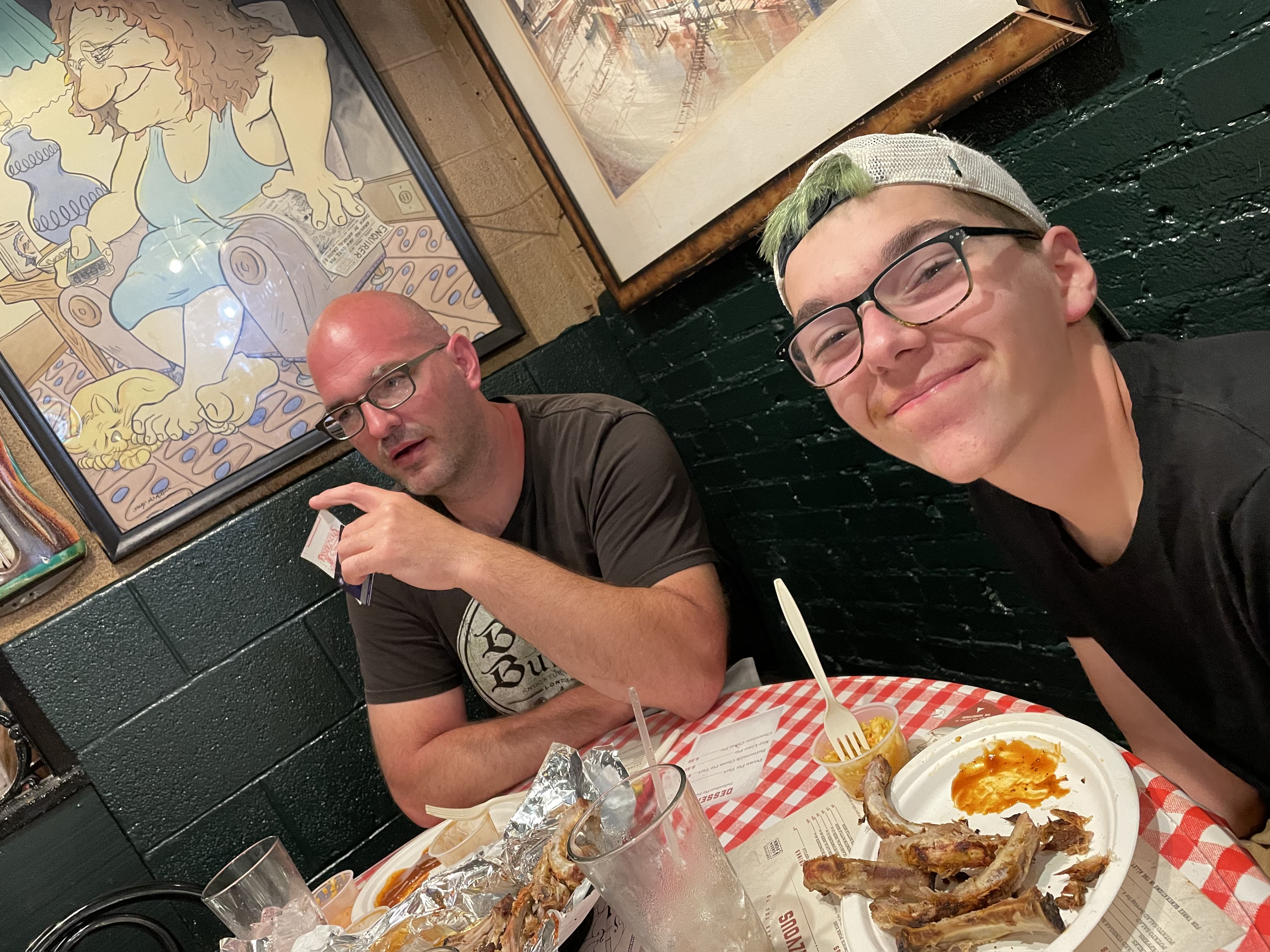 After walking all around Memphis, we decided to head back to the Peabody to rest, swim, and get ready for a boat ride we took on the Mississippi with Memphis Riverboats. We were looking online for some restaurant recommendations, hoping to get a taste of some authentic southern barbeque. Luckily, Brian stopped to chat with one of the employees at the Peabody, and asked for suggestions. He recommended a small place “down that alley. It’s in the basement. You’ll smell it before you see it.” Wow, was he right. Charles Vergo’s Rendezvous was the best! The atmosphere was hectic but also low-key at the same time. The staff was no-nonsense… friendly, but very efficient due to the bustle and crowd. We were lucky to get a table, and I have never tasted BBQ that I enjoyed as much as I enjoyed this. The food came on paper plates. Our table had plastic red and white checker tablecloths, and we spent less than $60 for all 5 of us to have an amazing dinner. If you are in Memphis, you HAVE to check this place out!
