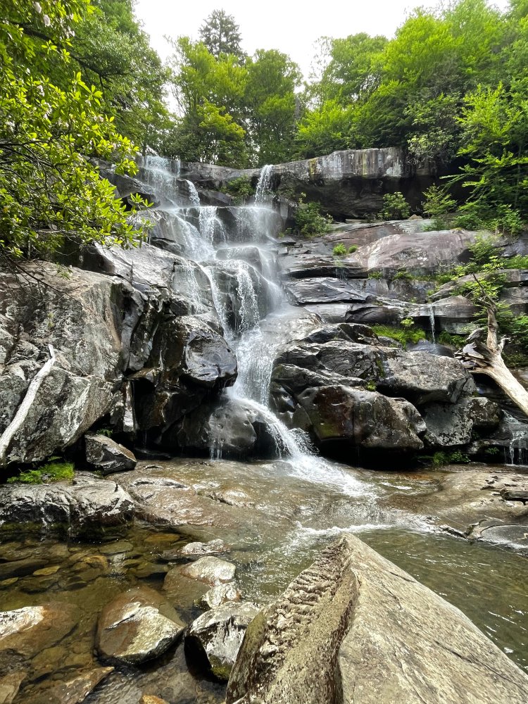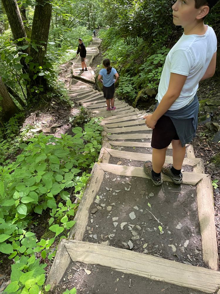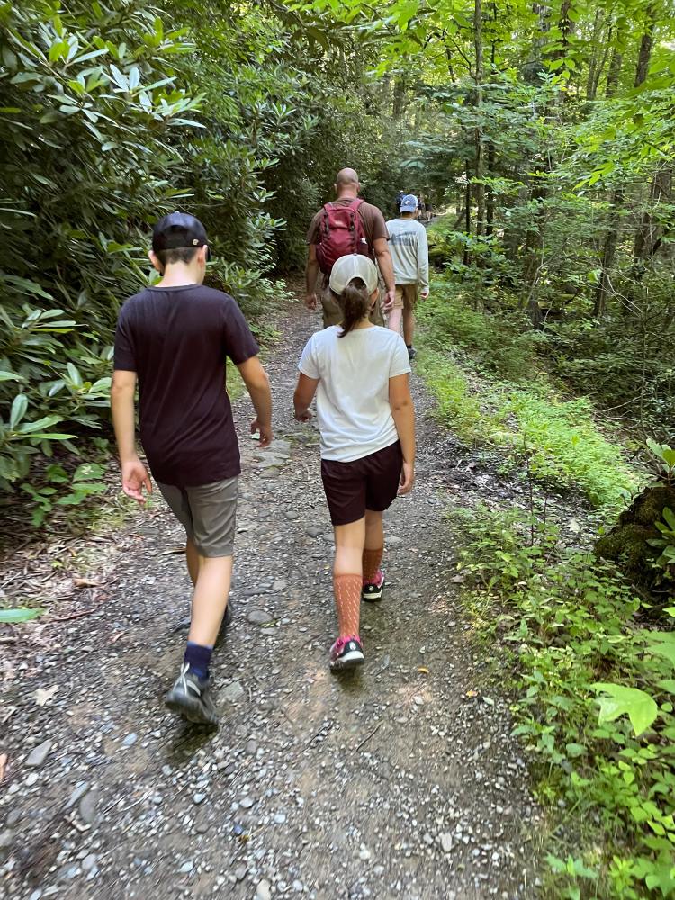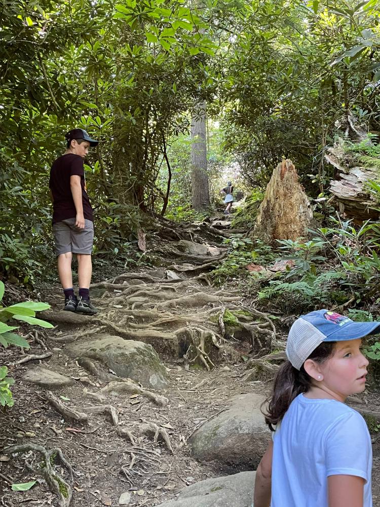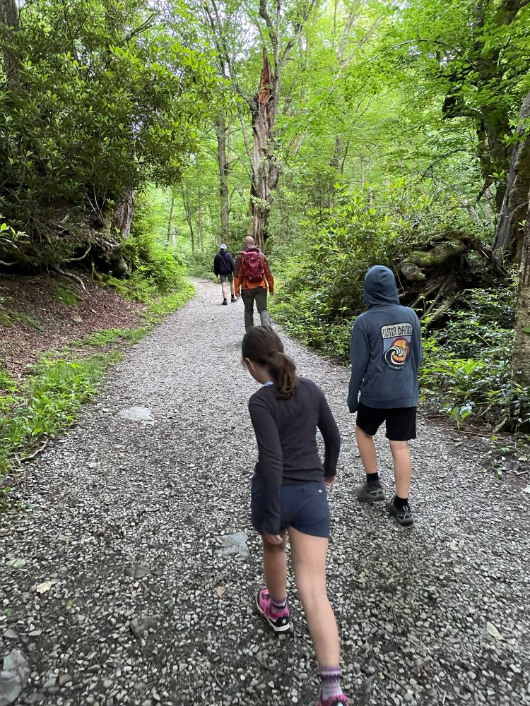 Back up at the crack of dawn, we headed out for our final day in the Great Smoky Mountain National Park. After researching several trails, we decided on the Ramsey Falls trail. This was our longest hike ever as a family. It was a tough one. Eight miles round trip, this is an out-and-back trail with beautiful waterfalls as your destination. The elevation change on this one was 2200 ft. gain. Again, I highly recommend getting up early for these hikes. Even with our early rise, the parking lot at the trail head was still pretty full upon our arrival. The last mile or so before the falls was very “boulder-heavy,” and we did a lot of scrambling more than walking on that stretch. The falls at the end of the 4 miles were beautiful and well-worth the effort to get there. Normally, the return trip on an “out and back” trail seems to go much quicker, but Gracie started to lose steam. It took a lot of extra encouragement to keep her going. Brian put her on his shoulders for a short bit, but she is 10 now and no longer just a tiny peanut. He put her back down after a short bit. Still, I am so glad we did this hike. It proved to the kids that they could handle long distances, and though we were exhausted at the end, I think we all felt proud of our accomplishment afterwards. We decided to treat the kids to some go-kart riding and dinner at a Brazilian steakhouse in Pigeon Forge that evening. They deserved it after all their hard work (and no complaining!).
