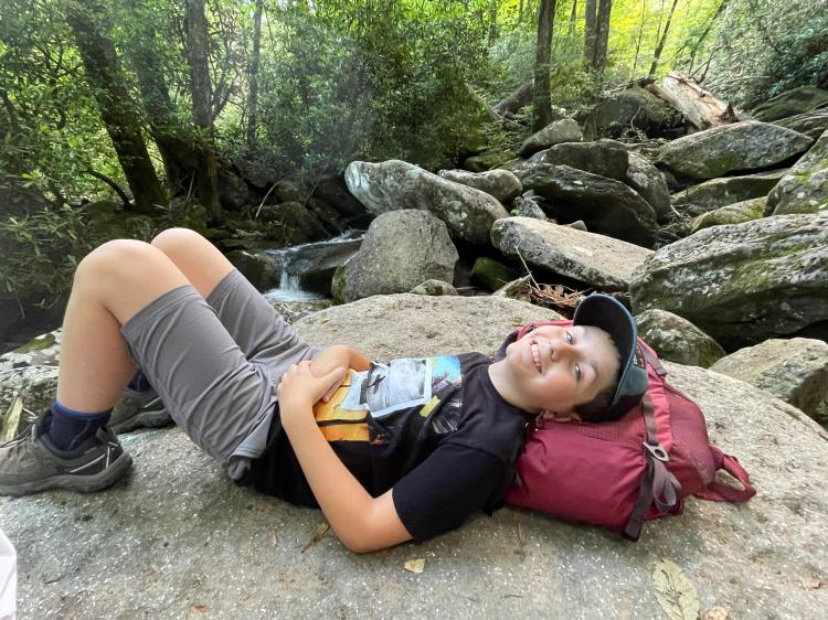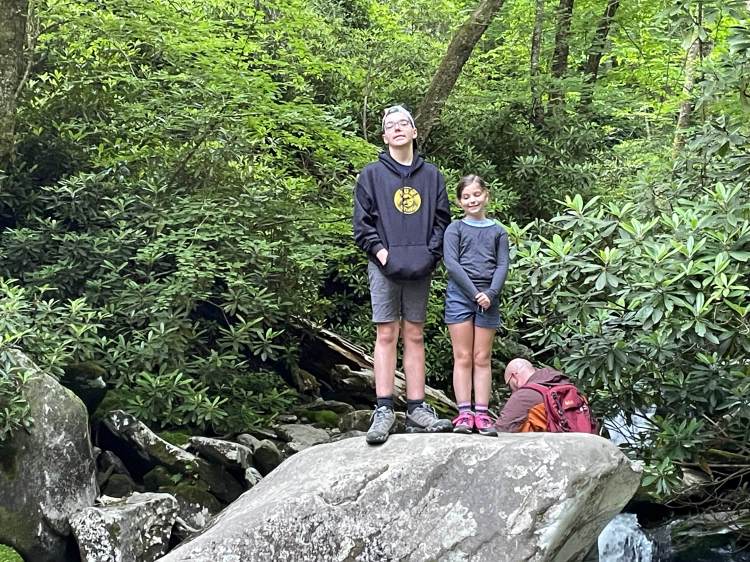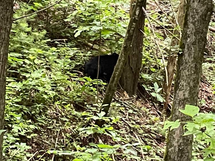 We decided to try something new for this National Park trip, and we booked a horseback ride for the family. I recommend you book this in advance because these trips can also fill up quickly. We went with Cades Cove Riding Stables. The staff and guides were so knowledgeable and fun. I was so glad we decided to try this out! It also gave us a “break day” between two longer hike days. After our guided trail ride on the horses, we drove the Cades Cove loop to explore more of the park. Seth was on high alert to watch closely for bears, and luckily he spotted one for us while driving through the park. It was difficult to get a good photo, but he was certainly fun to watch from afar!