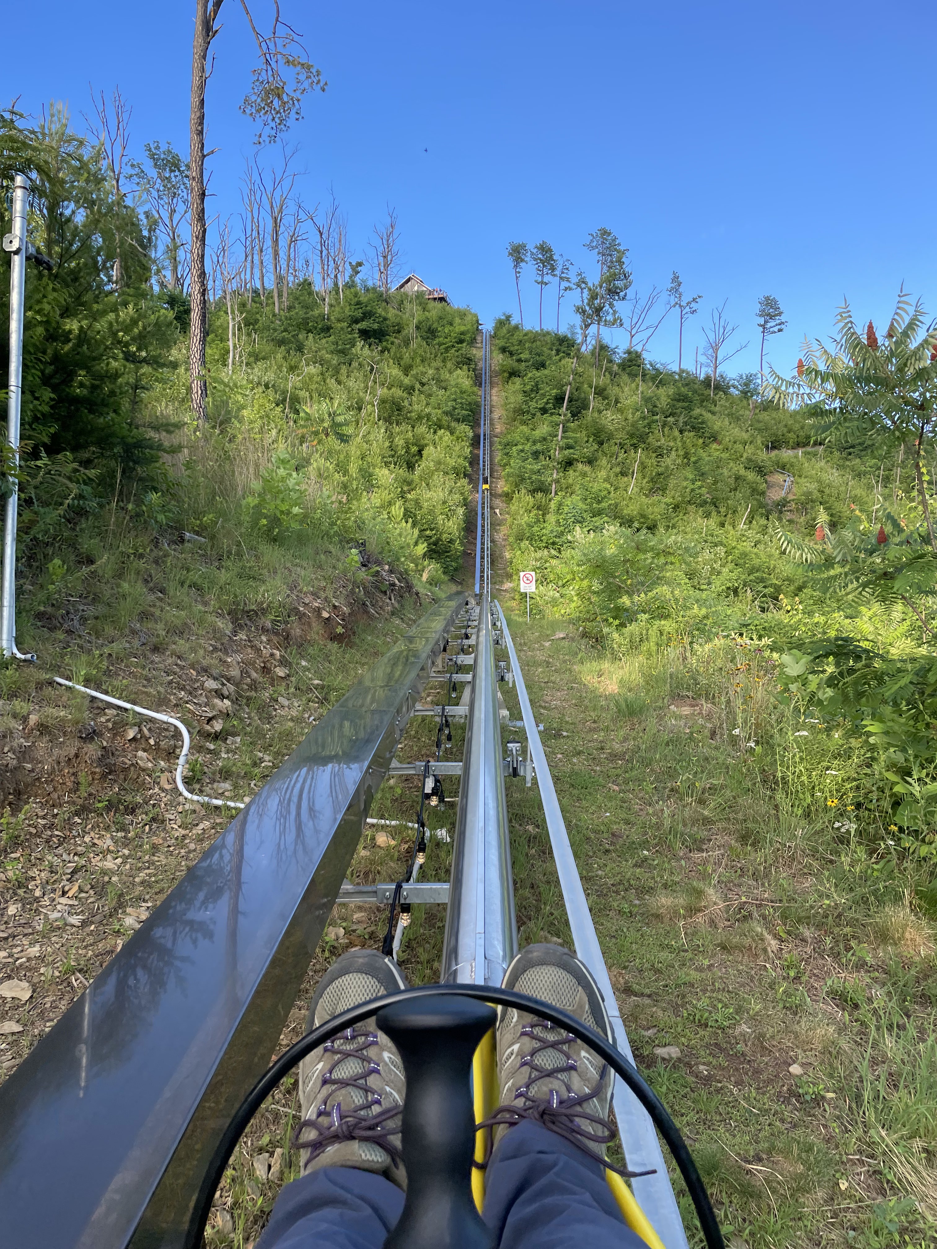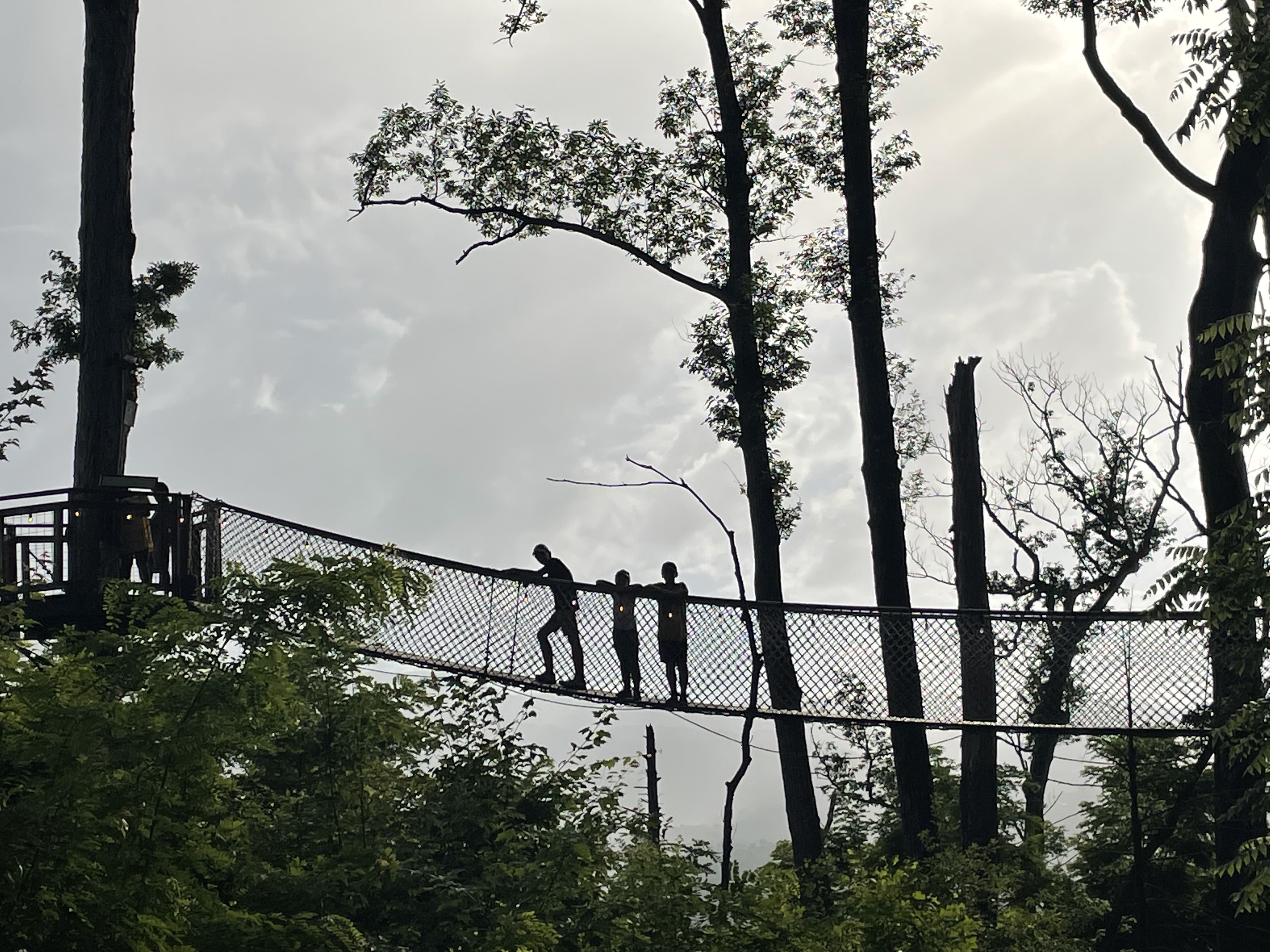 After exploring the park some more, we decided to head back into Gatlinburg to check out Anakeesta. Anakeesta is a mountain-top adventure park that was recommended by many travel bloggers. I am so glad that we checked this out. Brian and I both said we wish we would have purchased a day pass and spent more time there. To get to the park, you ride up the mountain in an enclosed gondola or an open lift. Much to my dismay, my entire family wanted to try the lift. I am terrified of these things and white-knuckled it the entire trip up the mountain, hanging very tightly to my two smaller kids. It was well worth the trip, though. We missed the zip-line, as that closes a little earlier, but we rode the mountain coaster, checked out some shops and food stands, walked to the top of the observation tower, and explored the treetop skywalk. The views were beautiful, the crowds were small, and the whole evening was a relaxing, quieter-paced experience. If you are in Gatlinburg, Anakeesta should definitely make to to your “to do” list!